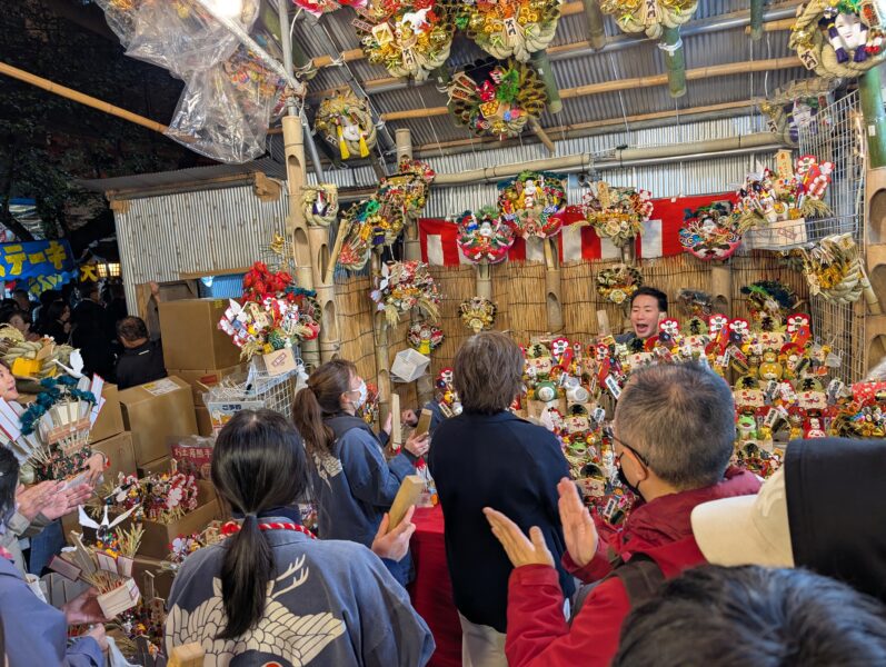 11月12日に新宿の花園神社で一の酉の本祭、花園神社大酉際が行われていました。 毎年11月に開催され、多くの参拝客が訪れることで知られています。